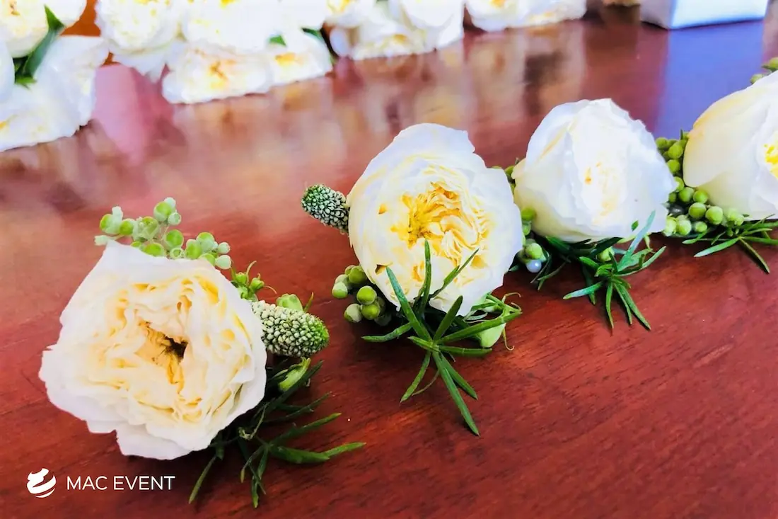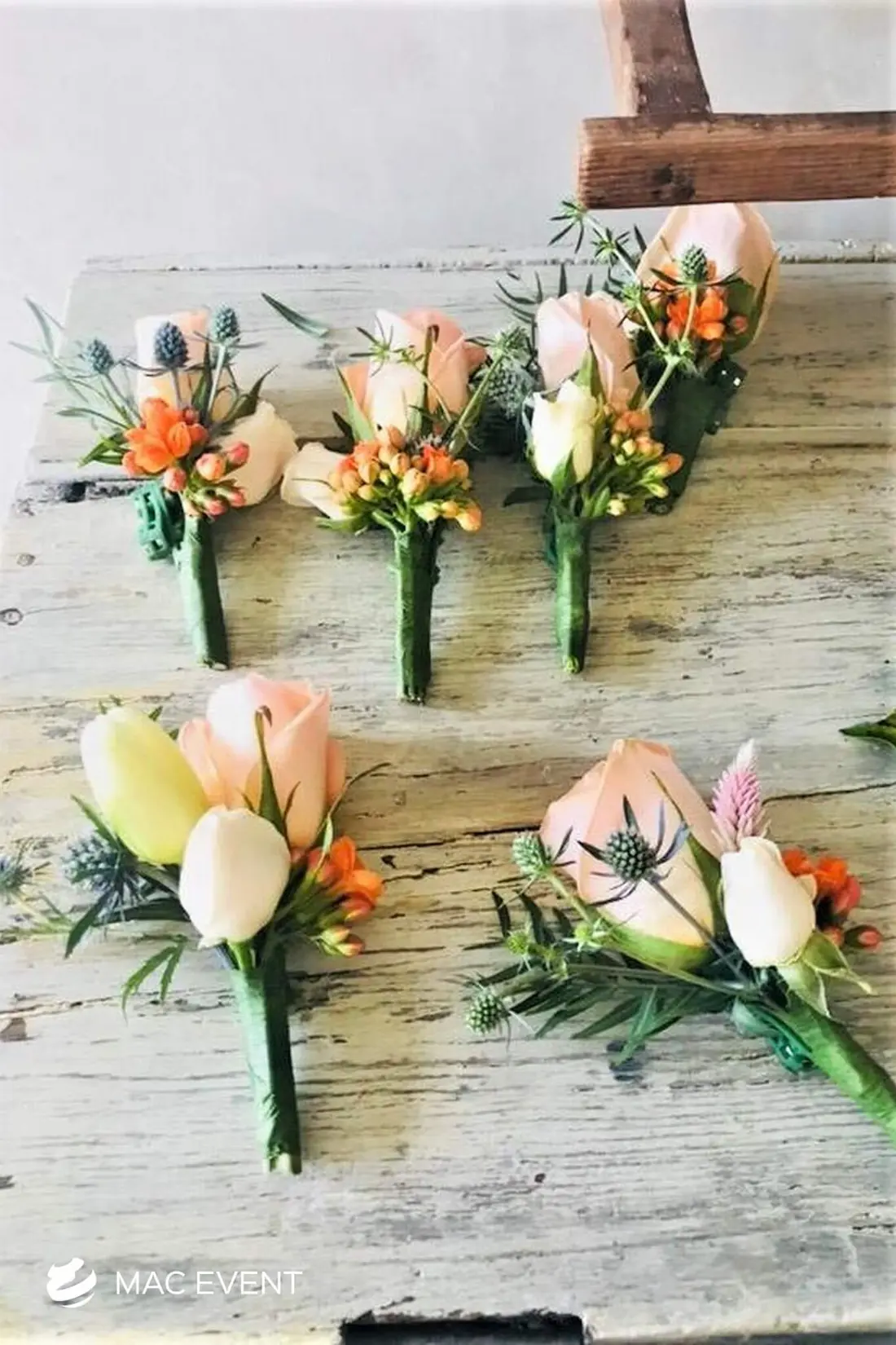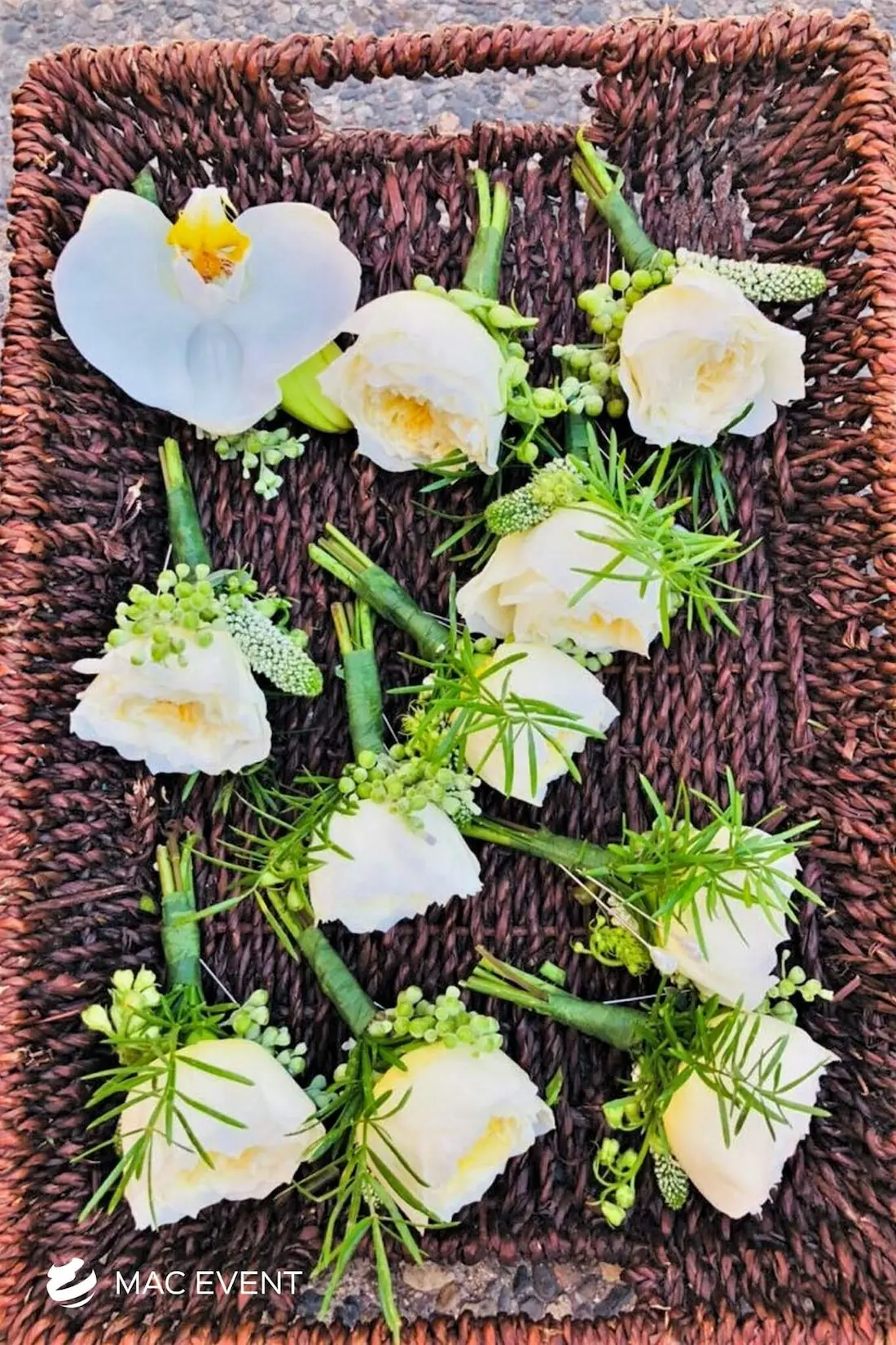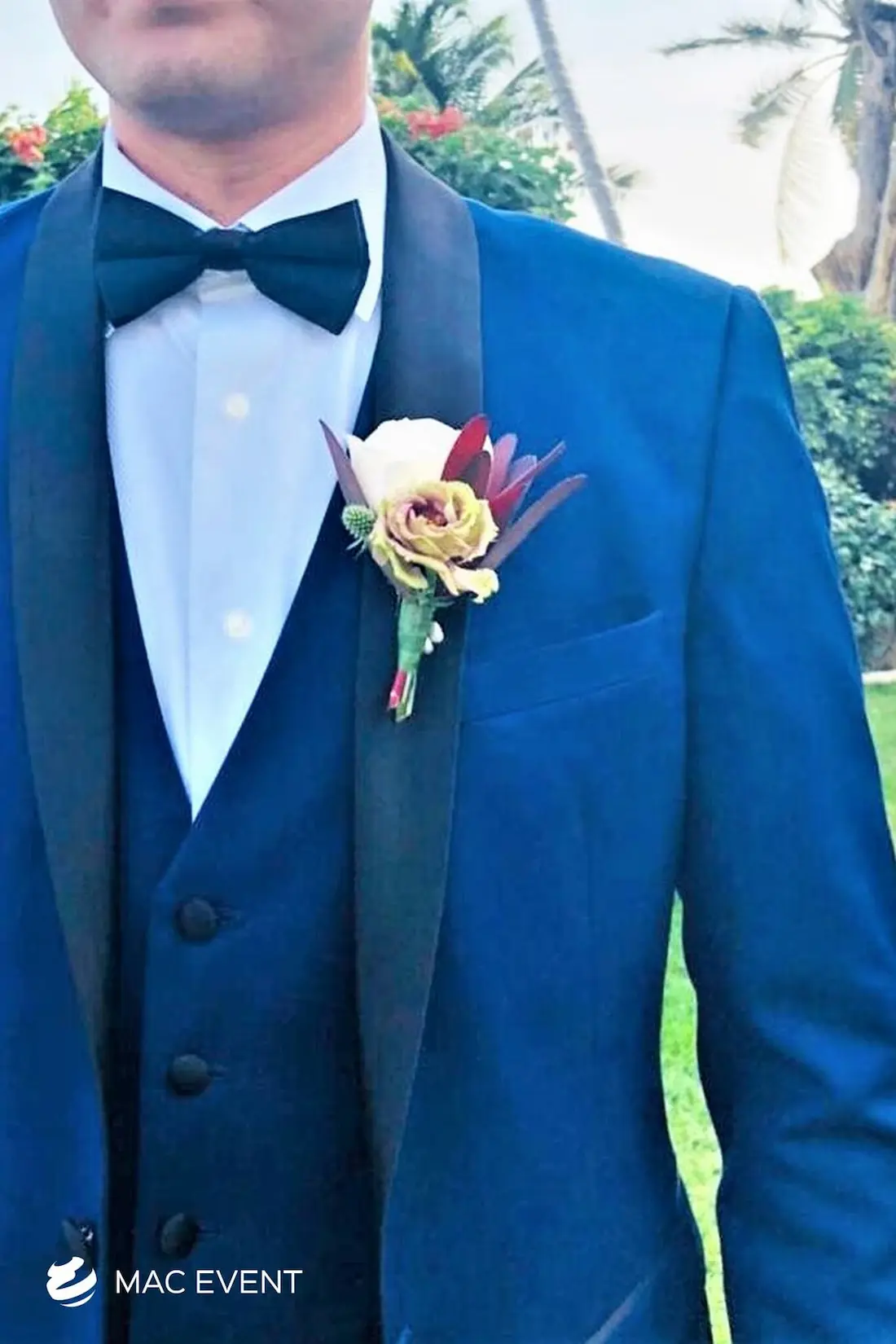 The boutonniere is a refined floral accent that adds elegance and personality to weddings and formal events in Nuevo Nayarit. Traditionally worn on the lapel, this small wedding floral accessory complements the bride’s bouquet and ties the overall design together. Crafted with fresh blooms or greenery, the boutonniere highlights the groom, groomsmen, and key family members with a coordinated touch of style. Ordering boutonnieres in Nuevo Nayarit ensures professional floral design and freshness that match your event’s color palette. For a classic and sophisticated detail, the boutonniere is a timeless finishing element.