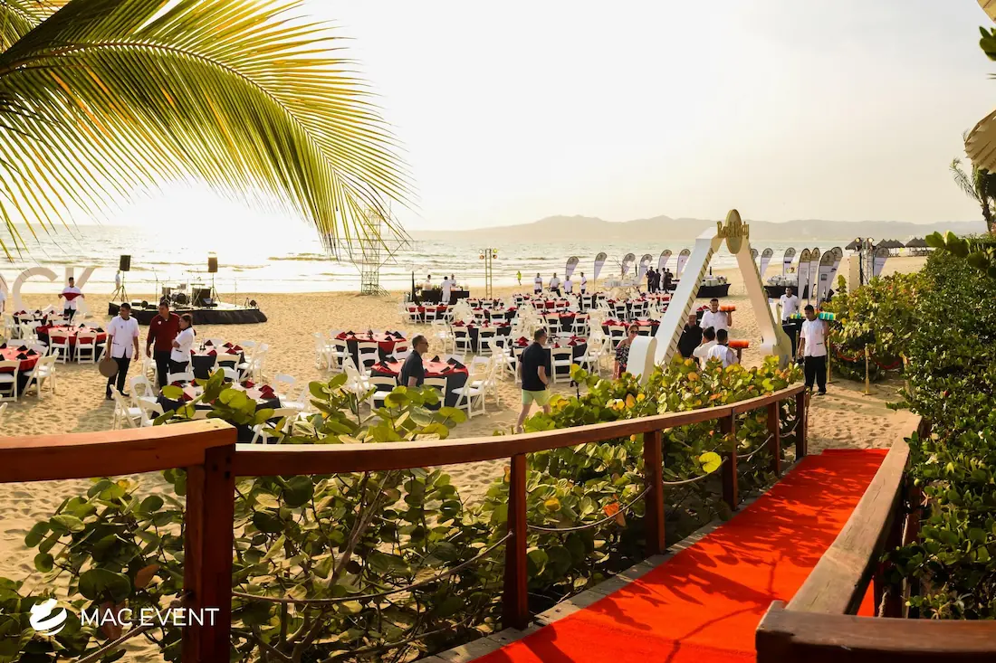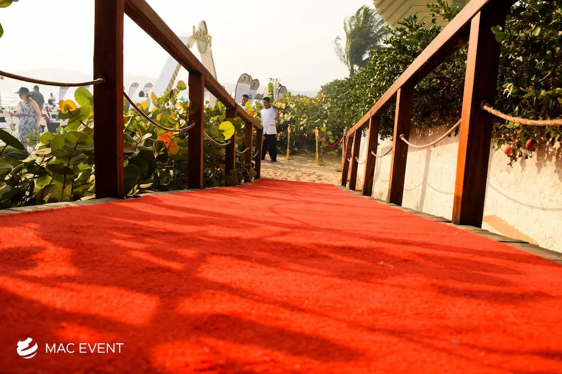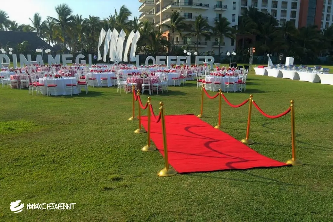 The red carpet adds glamour and sophistication to weddings, parties, and corporate events in Nuevo Nayarit. Perfect for entrances, photo areas, or award-style receptions, this event décor rental creates a luxurious and memorable first impression. Its vibrant color and elegant finish make every guest feel special while enhancing the overall atmosphere of your event. Renting a red carpet in Nuevo Nayarit ensures a polished, professional setup that elevates your décor. For a touch of elegance and celebrity-style charm, the red carpet is a timeless addition to any celebration.