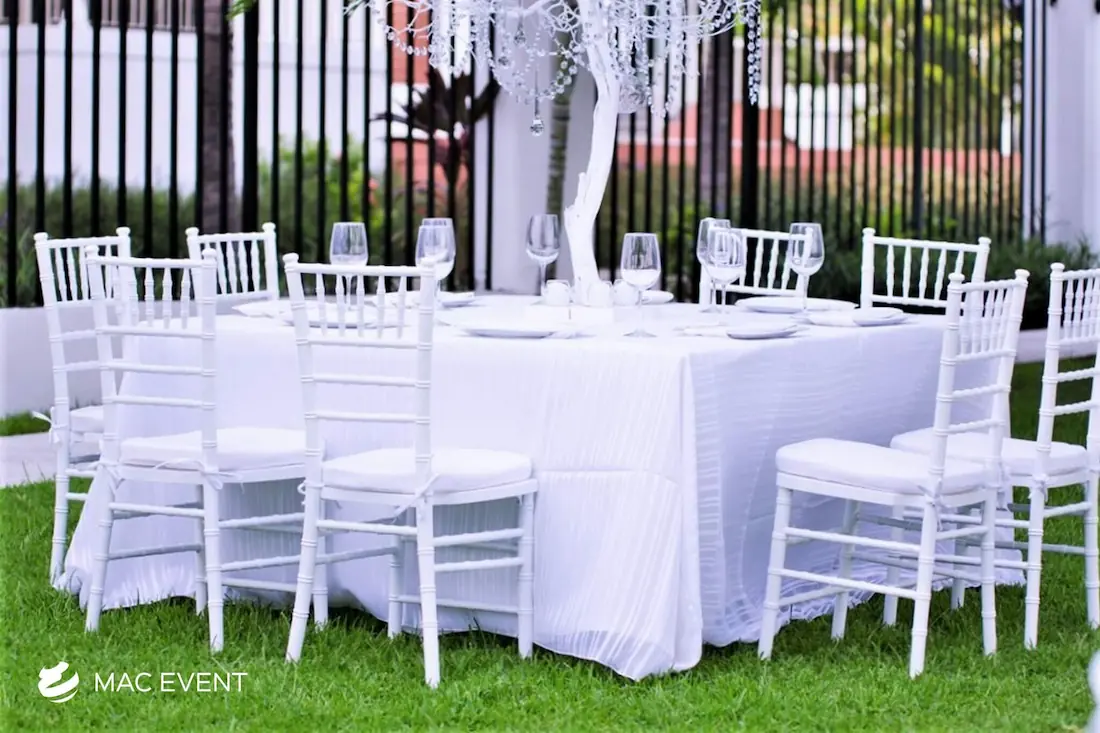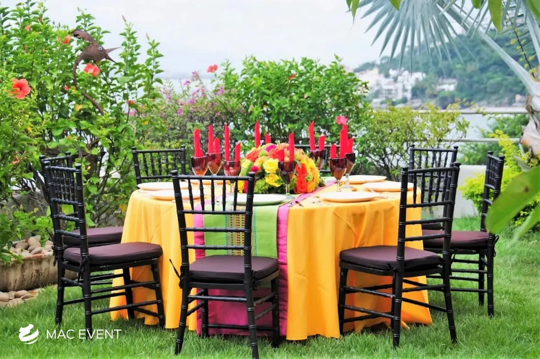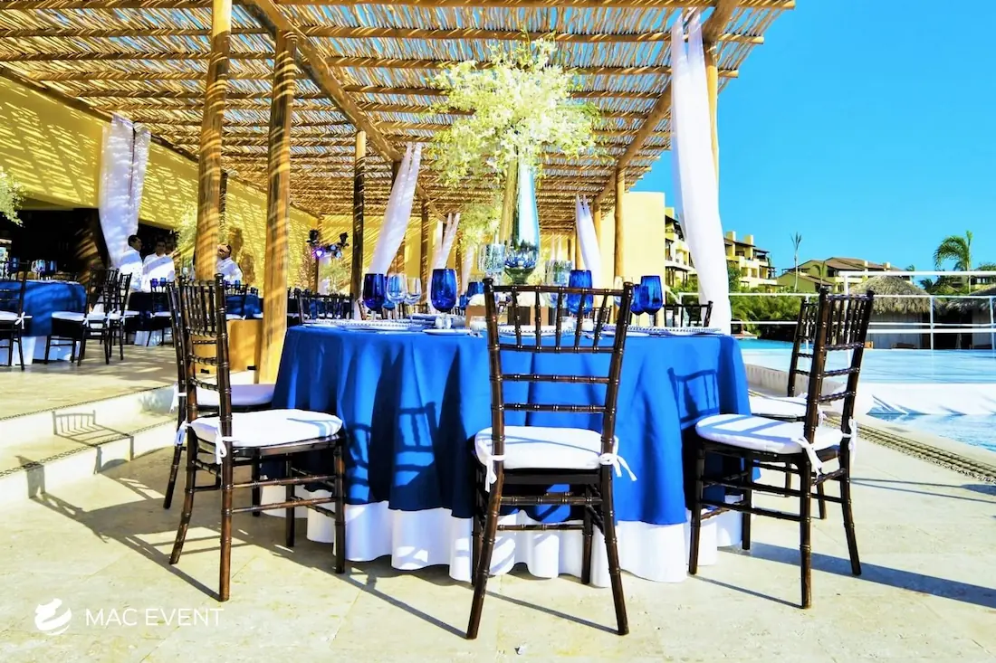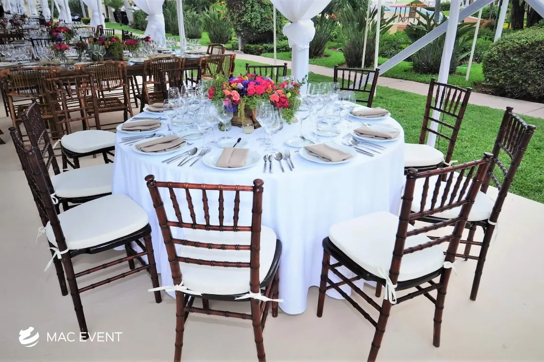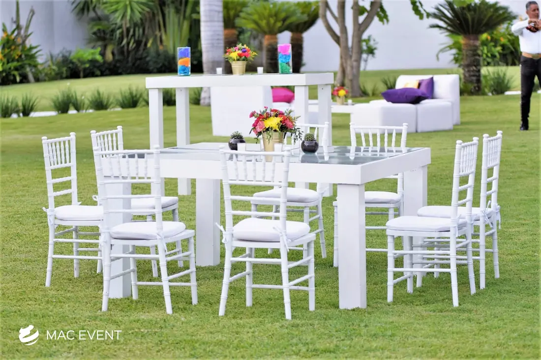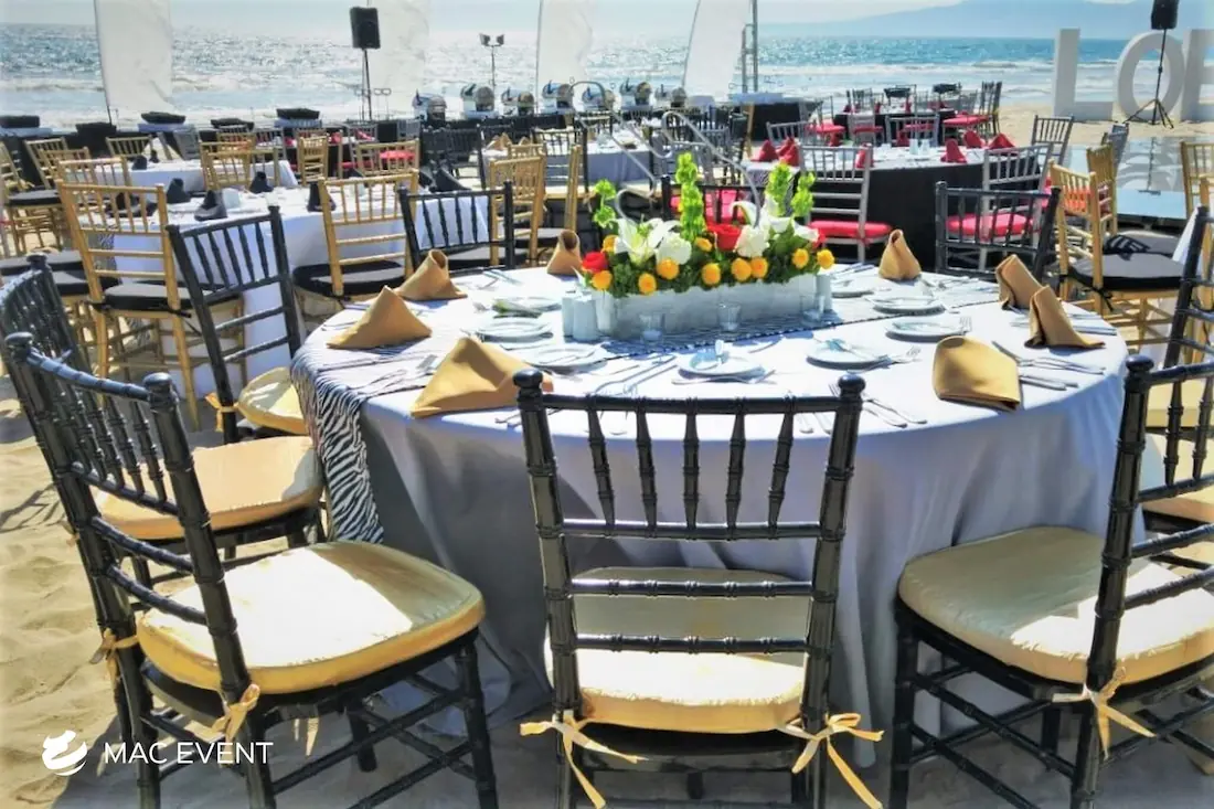 The wood chiavari chair, also known as a tiffany chair, brings warmth and elegance to weddings, parties, and corporate events in Nuevo Nayarit. Its natural wood finish and classic design make it a favorite for both indoor and outdoor settings. This chiavari chair rental offers a perfect balance of beauty and durability, providing sturdy and comfortable seating for guests. Renting wood tiffany chairs allows you to create a cohesive and refined atmosphere that complements any event style or décor. For those who value sophistication and timeless appeal, wood chiavari chairs are the ideal choice for creating a memorable event in Nuevo Nayarit.