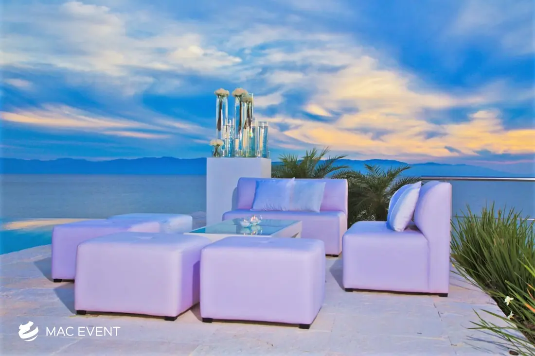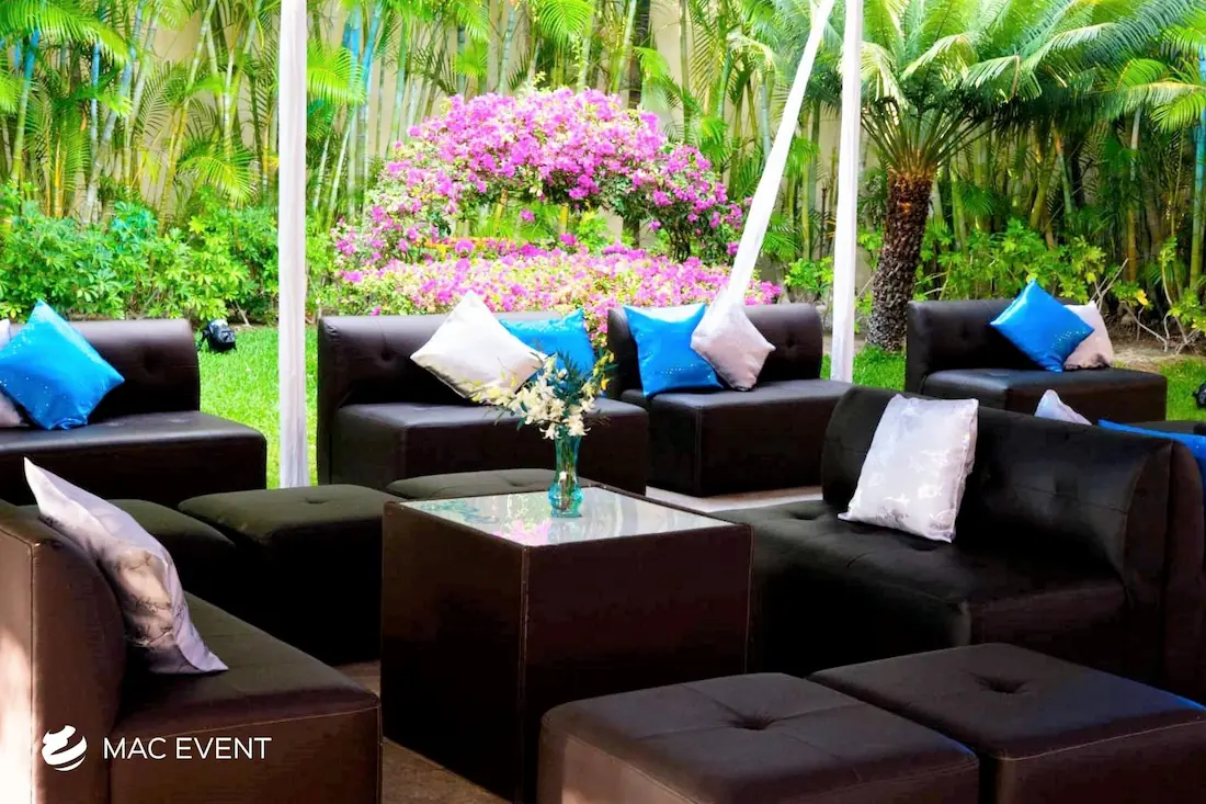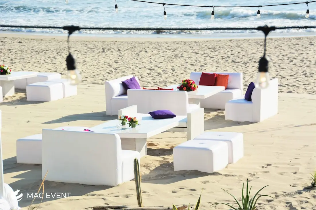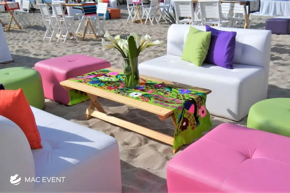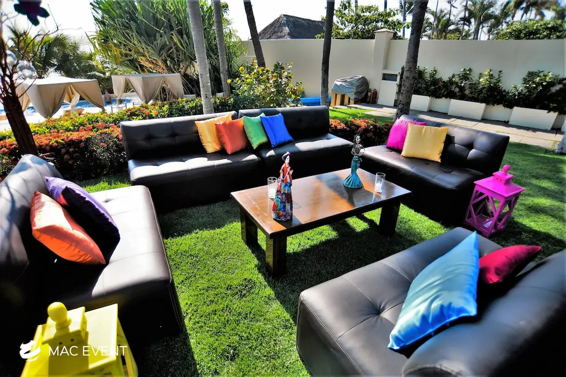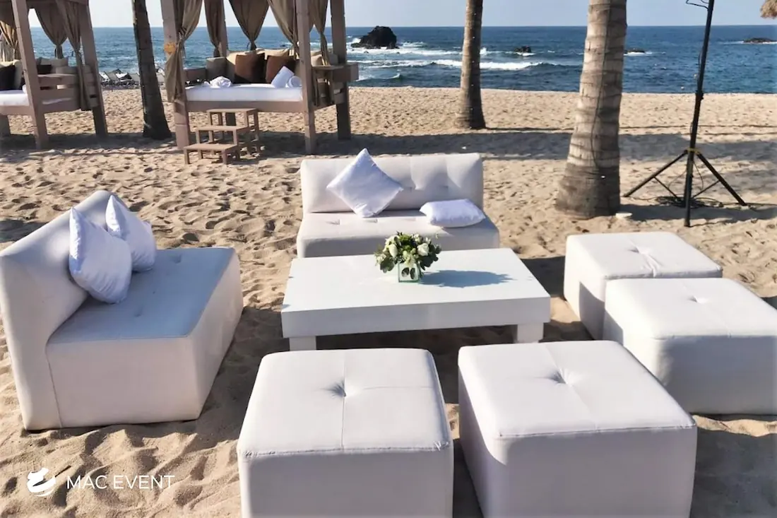The classic lounge brings timeless elegance and comfort to weddings, parties, and corporate events in Nuevo Nayarit. With its refined design and neutral tones, this event lounge rental creates an inviting space where guests can relax and enjoy the celebration. Perfect for receptions, cocktail areas, or outdoor gatherings, the classic lounge pairs beautifully with any décor style, from traditional to modern. Renting classic lounges in Nuevo Nayarit ensures a polished, coordinated look that enhances your event’s atmosphere. For a touch of sophistication and effortless comfort, the classic lounge is a perfect choice for any occasion.