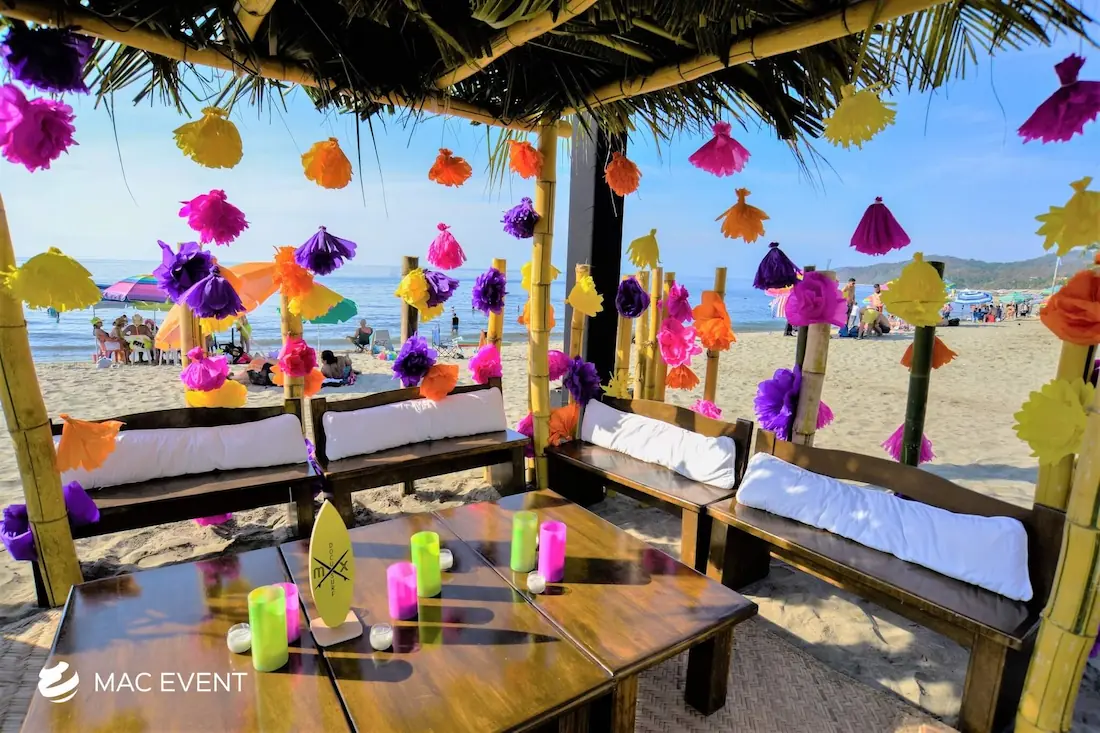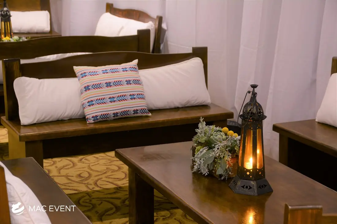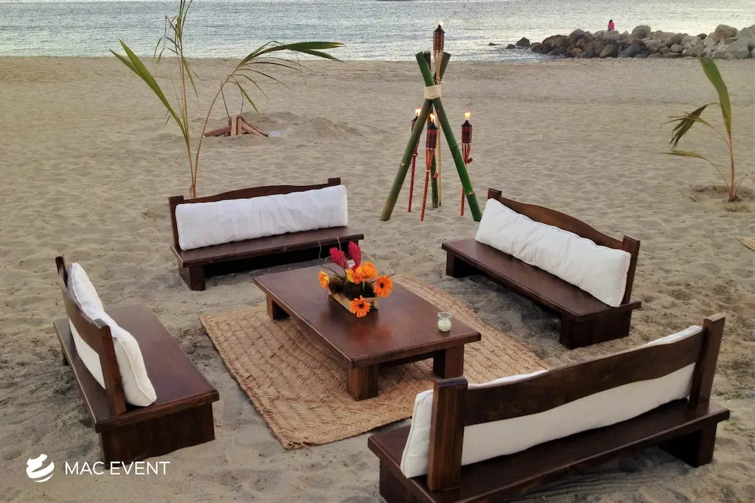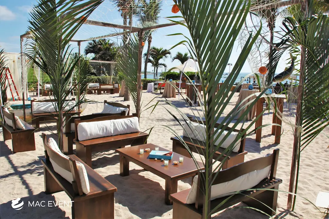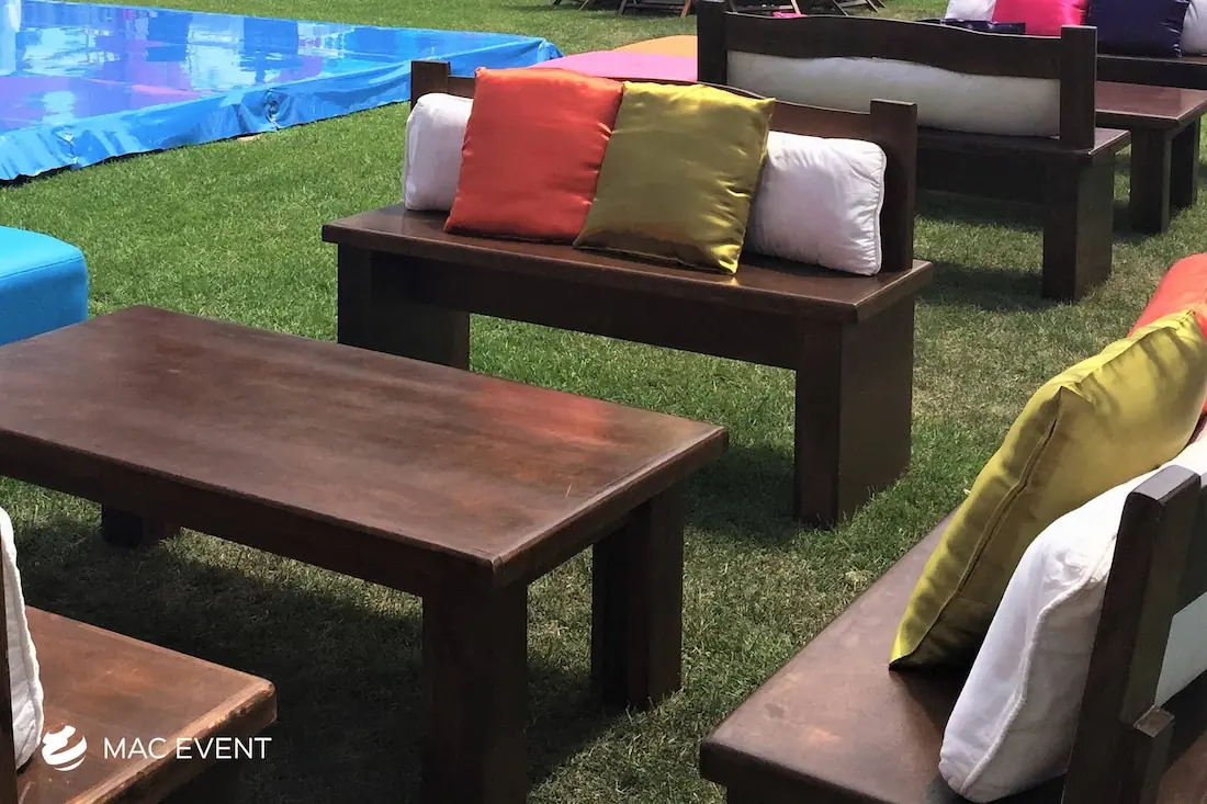 The rustic lounge adds warmth and natural beauty to weddings, beach parties, and corporate events in Nuevo Nayarit. With its wooden textures, earthy tones, and cozy design, this event lounge rental creates a relaxed yet elegant atmosphere that complements tropical, boho, or countryside themes. Ideal for outdoor receptions and social areas, the rustic lounge invites guests to unwind and connect in comfort. Renting rustic lounges in Nuevo Nayarit allows you to design charming and cohesive spaces that feel authentic and stylish. For a welcoming setup that blends nature and sophistication, the rustic lounge is an excellent choice.