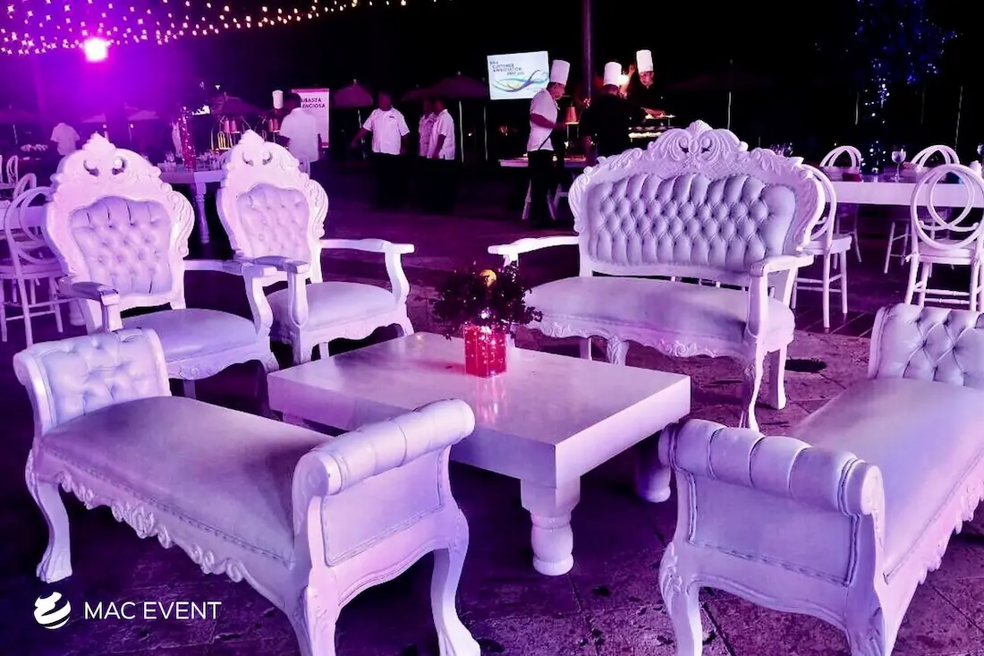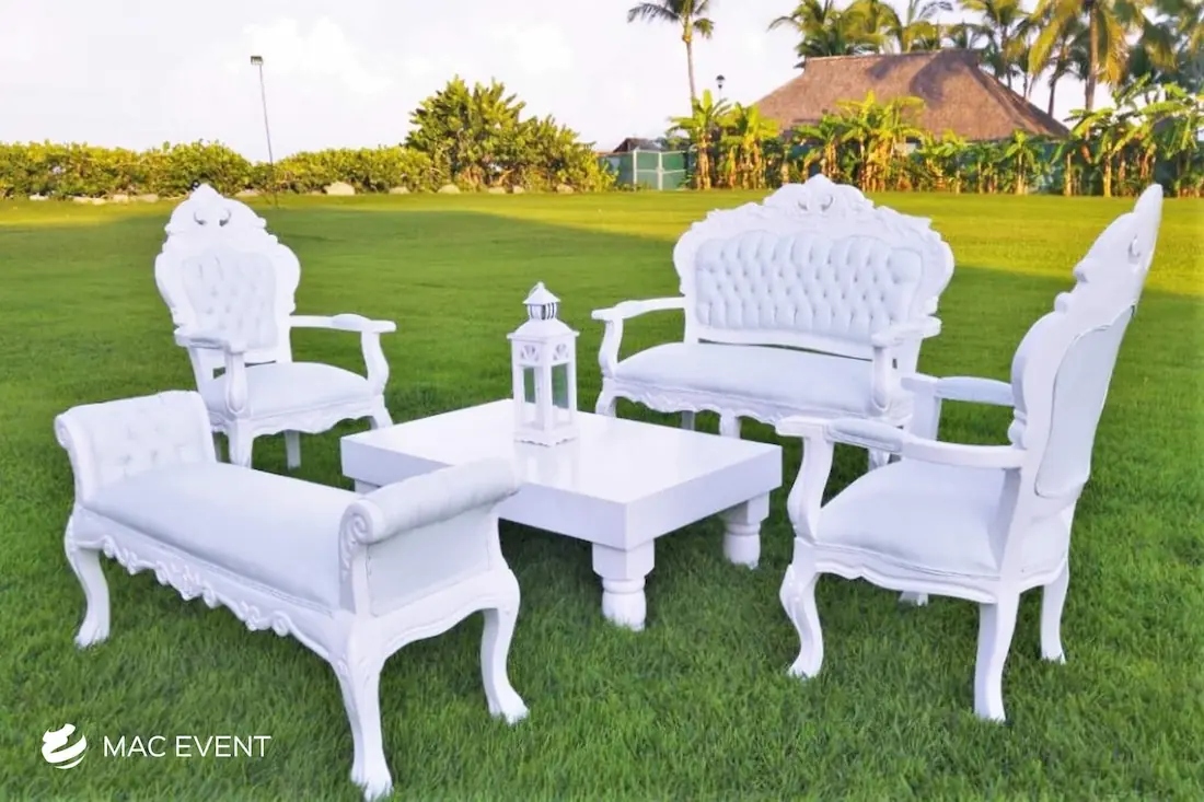 The victorian lounge adds a touch of luxury and refinement to weddings, parties, and corporate events in Nuevo Nayarit. Characterized by its elegant curves, ornate details, and plush upholstery, this event lounge rental creates a sophisticated atmosphere reminiscent of classic European style. Ideal for formal receptions, photo areas, or upscale gatherings, the victorian lounge combines comfort with timeless beauty. Renting victorian lounges in Nuevo Nayarit ensures a graceful and coordinated look that elevates your event’s décor. For those seeking elegance, charm, and a sense of grandeur, the victorian lounge is the perfect choice.