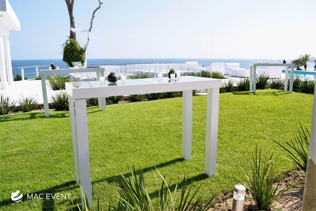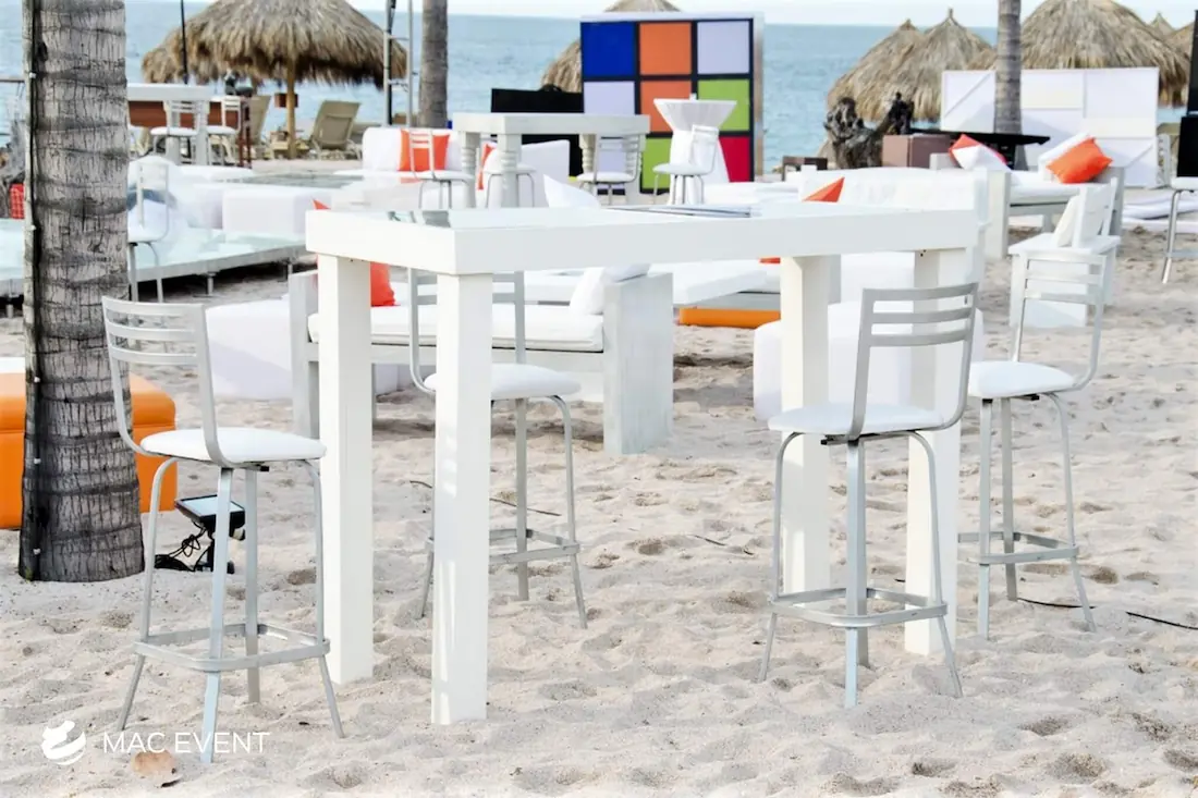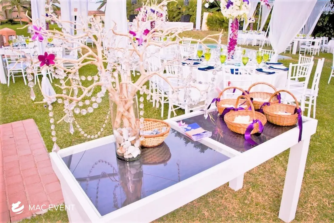 The wooden glass cocktail table combines natural beauty with modern elegance, making it a stylish choice for weddings, parties, and corporate events in Nuevo Nayarit. Its wooden base adds warmth and character, while the glass top gives a sleek, refined finish that complements any décor. This event table rental works perfectly for cocktail hours, lounge areas, or receptions where you want to create a polished yet inviting atmosphere. Renting wooden glass cocktail tables in Nuevo Nayarit ensures a cohesive setup that blends sophistication with comfort. For an event that stands out with style and balance, this table is an ideal addition.