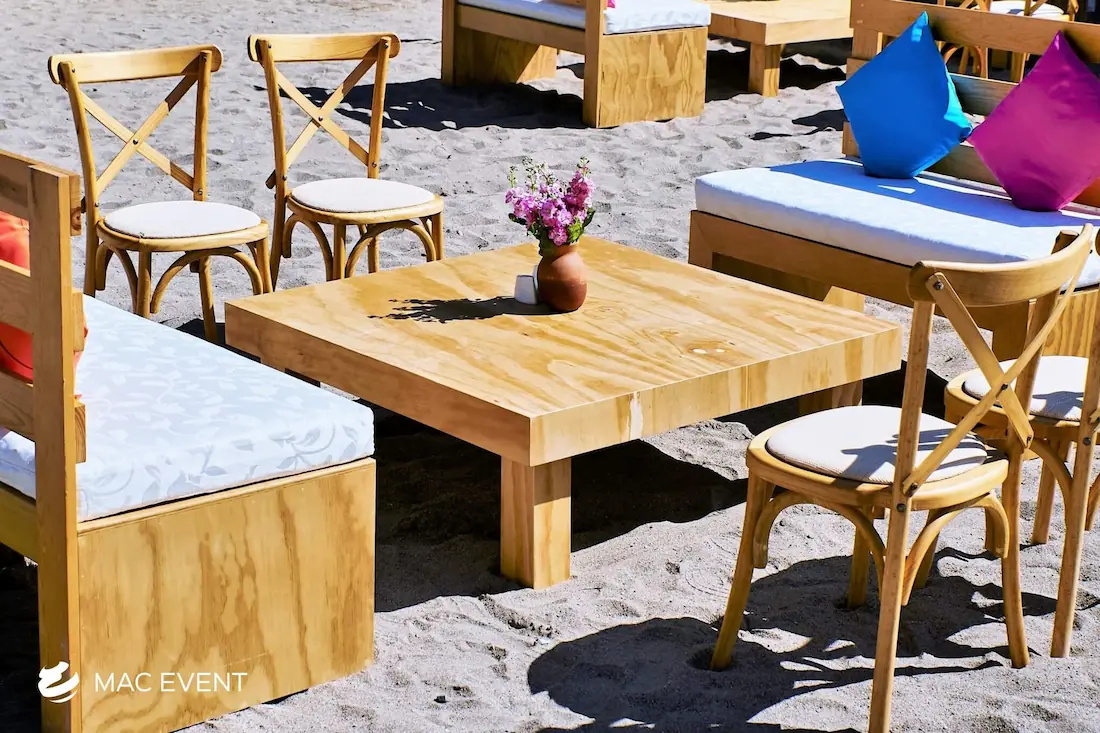 The natural coffee table is a beautiful choice for weddings, parties, and corporate events in Nuevo Nayarit. With its organic wood finish and simple design, this event table rental adds warmth and authenticity to lounge areas, cocktail setups, or outdoor receptions. Its neutral tone complements any décor, from tropical and rustic to modern and minimalist. Renting natural coffee tables in Nuevo Nayarit helps you create comfortable, stylish spaces where guests can gather and enjoy the ambiance. For a touch of effortless elegance inspired by nature, the natural coffee table is an ideal addition to any event setup.