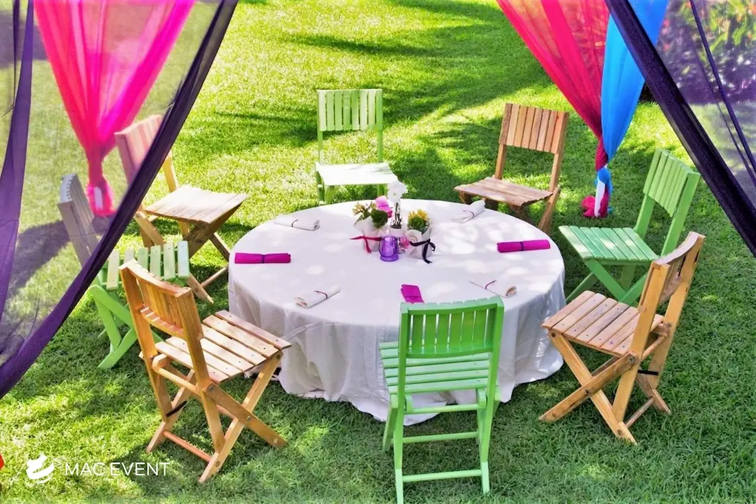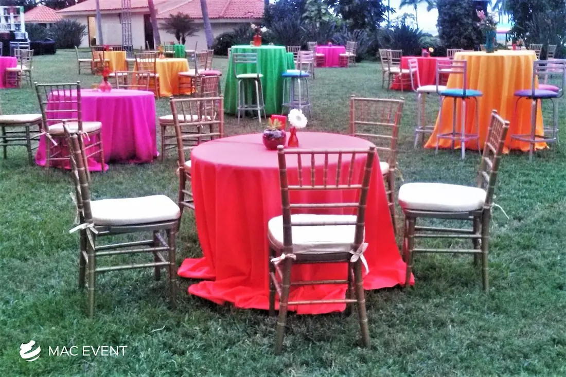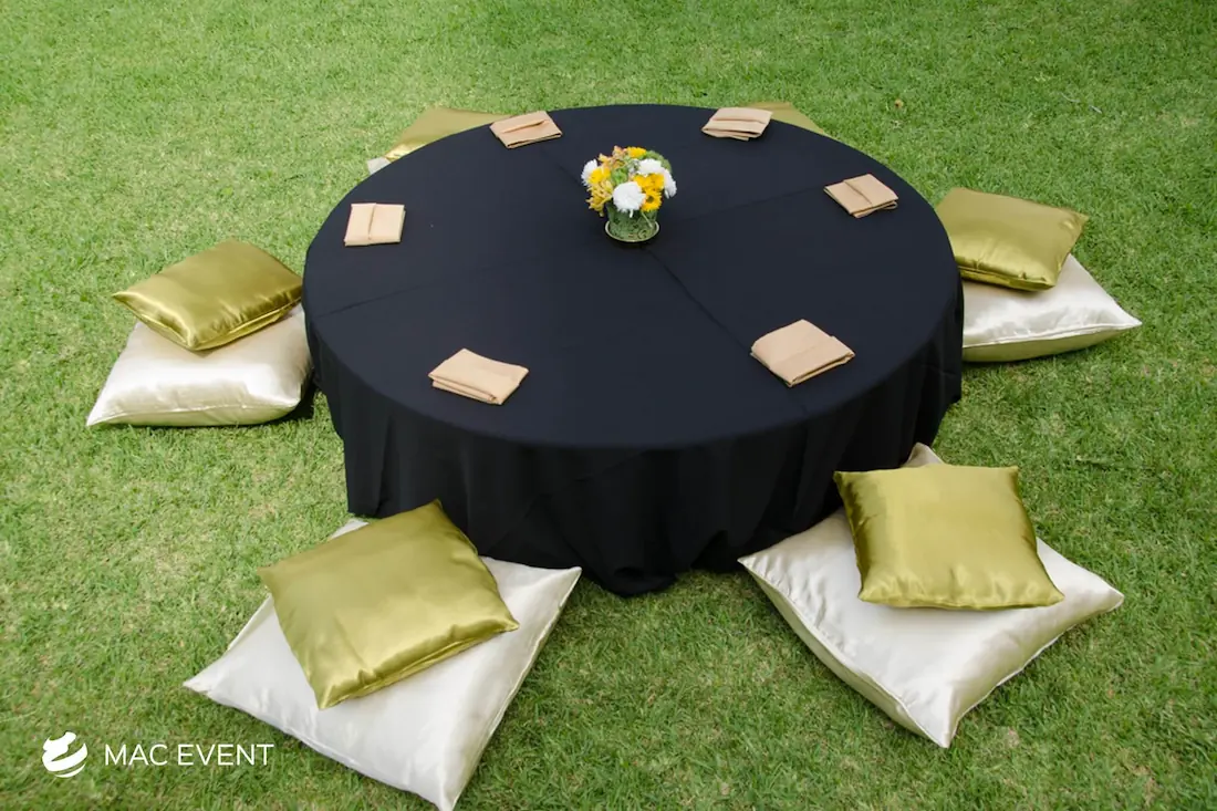 The round coffee table brings elegance and comfort to weddings, parties, and corporate events in Nuevo Nayarit. Its smooth circular design encourages conversation and creates a welcoming atmosphere in lounge or cocktail areas. This event table rental pairs beautifully with sofas, ottomans, and floor pillows, adding balance and flow to your décor. Renting round coffee tables in Nuevo Nayarit allows you to design cozy, stylish spaces where guests can relax and enjoy the celebration. For a refined yet relaxed touch, the round coffee table is the perfect addition to any event setup.
