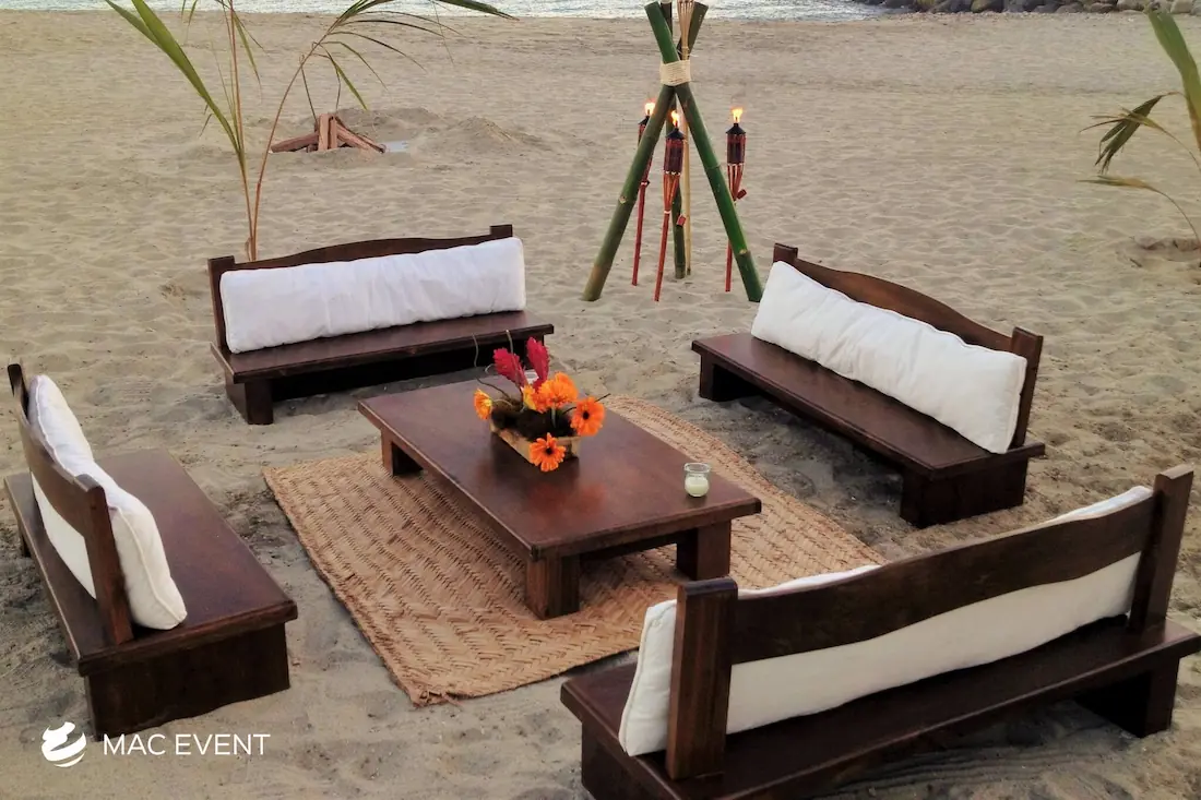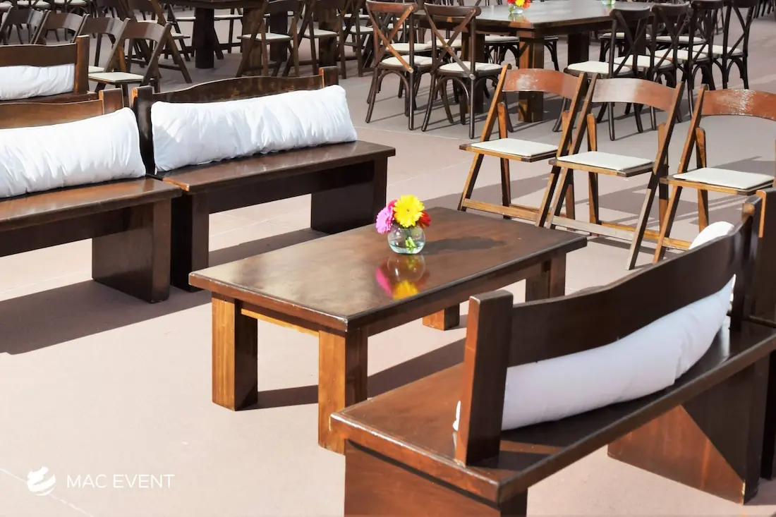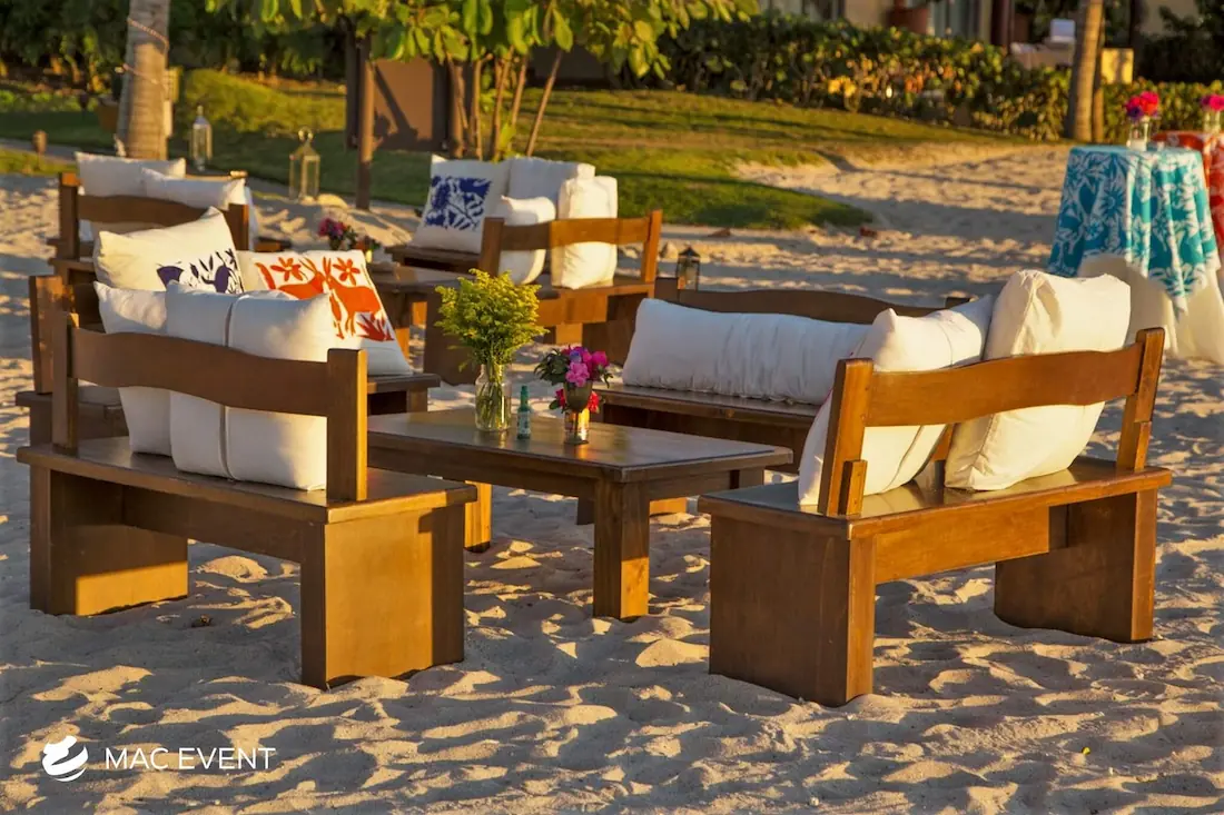 The rustic coffee table adds warmth and character to weddings, private parties, and corporate events in Nuevo Nayarit. With its natural wood texture and handcrafted design, this event table rental creates a cozy and inviting atmosphere that blends beautifully with beach, boho, or countryside themes. Ideal for lounge areas, cocktail setups, or outdoor receptions, rustic coffee tables provide both charm and functionality. Renting rustic coffee tables in Nuevo Nayarit allows you to design relaxed yet elegant spaces where guests can gather comfortably. For a natural and timeless touch, the rustic coffee table is a perfect choice for any event.