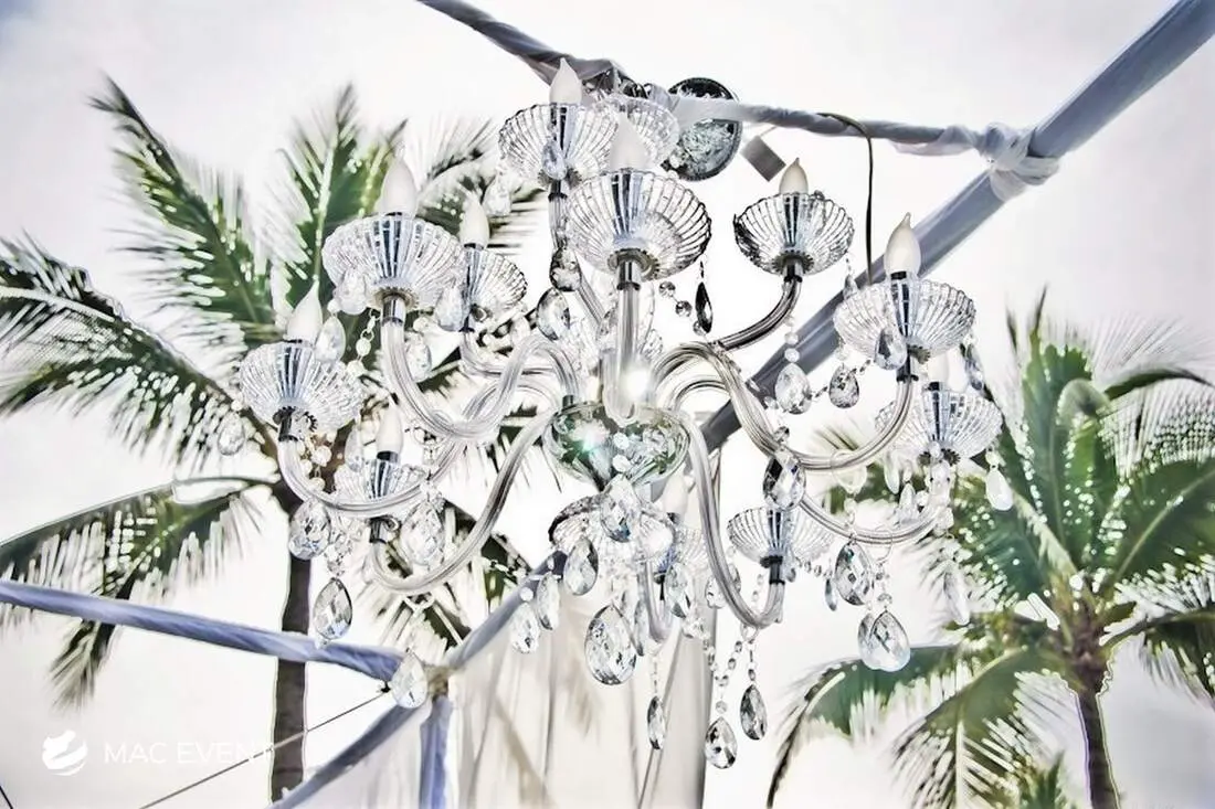 The chandelier adds elegance and sophistication to weddings, private parties, and corporate events in Nuevo Nayarit. As a stunning focal point, this event lighting rental enhances any venue with its graceful design and warm illumination. Perfect for ceremonies, receptions, or gala dinners, the chandelier brings a touch of luxury that elevates your overall décor. Renting chandeliers in Nuevo Nayarit ensures professional installation and a refined presentation that aligns with your event’s style. For a timeless and glamorous ambiance that captures attention, the chandelier is an exceptional addition to any celebration.