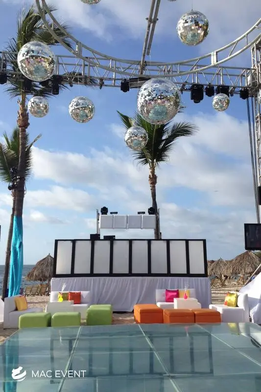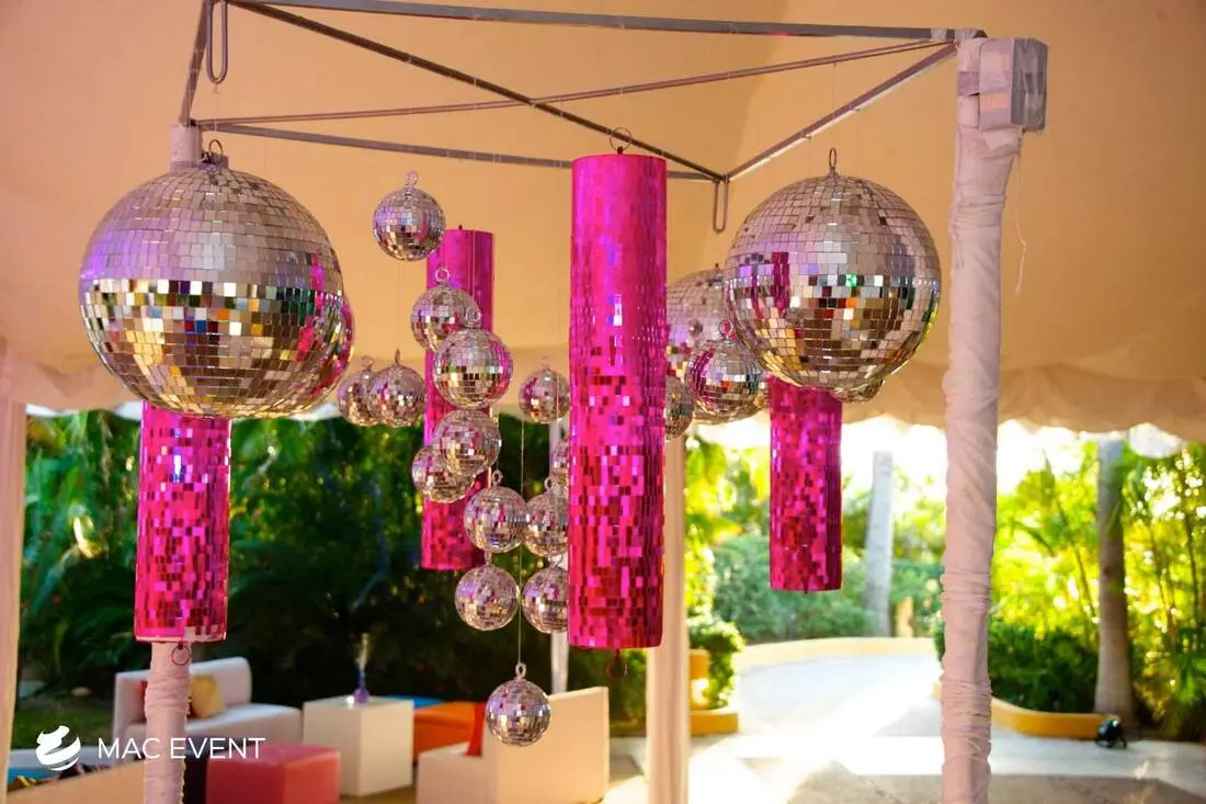 The disco ball adds sparkle, movement, and retro charm to weddings, parties, and corporate events in Nuevo Nayarit. Perfect for dance floors and evening celebrations, this event lighting rental reflects light beautifully across the venue, creating a fun and energetic atmosphere. Whether paired with colorful spotlights or modern LED effects, the disco ball brings a lively and festive touch to any setup. Renting disco balls in Nuevo Nayarit ensures professional installation and a polished look that keeps guests entertained. For a dazzling and unforgettable party experience, the disco ball is a classic favorite.