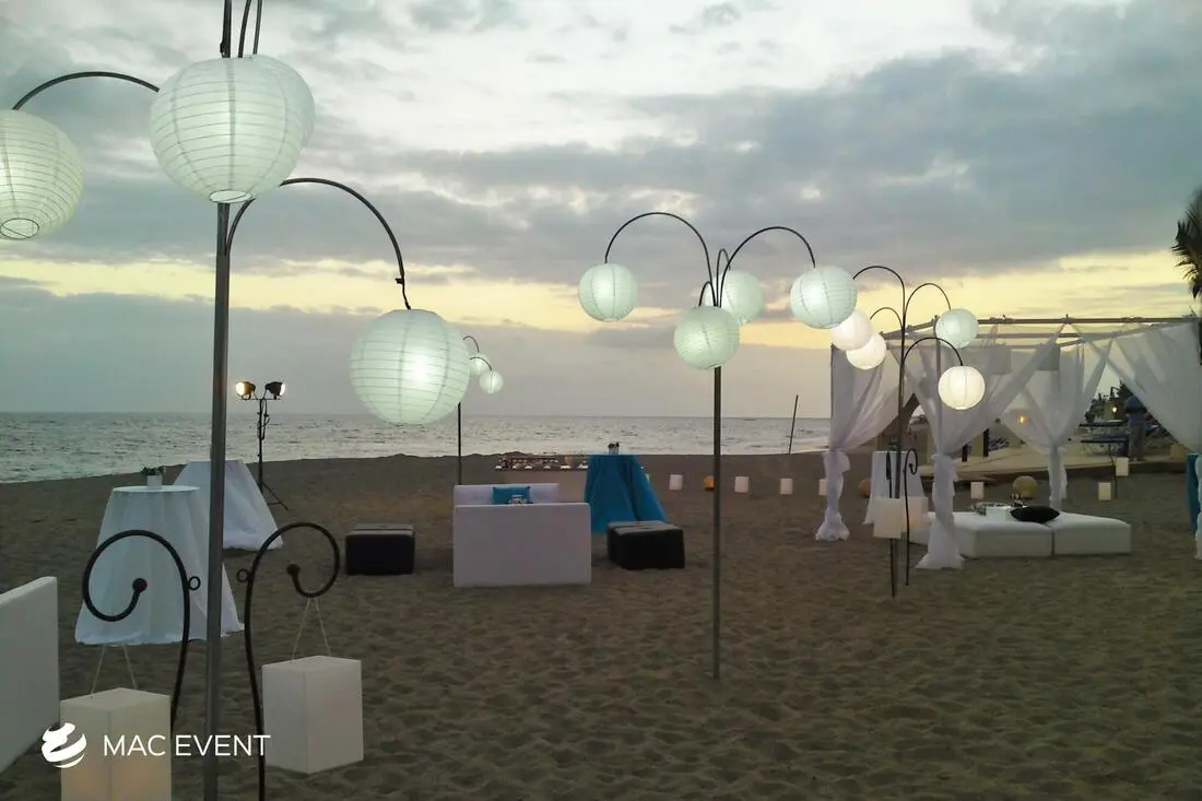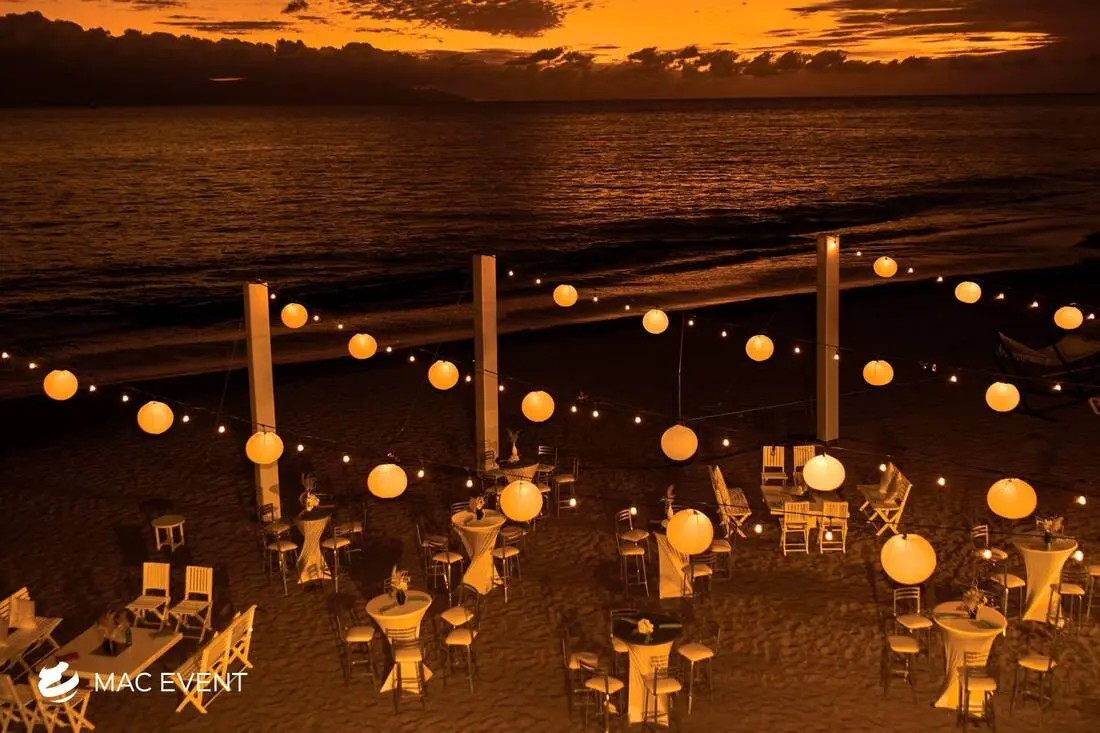 The paper lanterns add charm and a soft, romantic glow to weddings, parties, and corporate events in Nuevo Nayarit. Perfect for outdoor receptions, beach dinners, or garden celebrations, this event lighting rental creates a warm and inviting atmosphere. Available in various colors, sizes, and shapes, paper lanterns can be hung individually or in clusters to complement your décor. Renting paper lanterns in Nuevo Nayarit ensures professional installation and a cohesive look that enhances your theme. For an elegant and whimsical touch that transforms any space, the paper lanterns are a beautiful choice for any event.