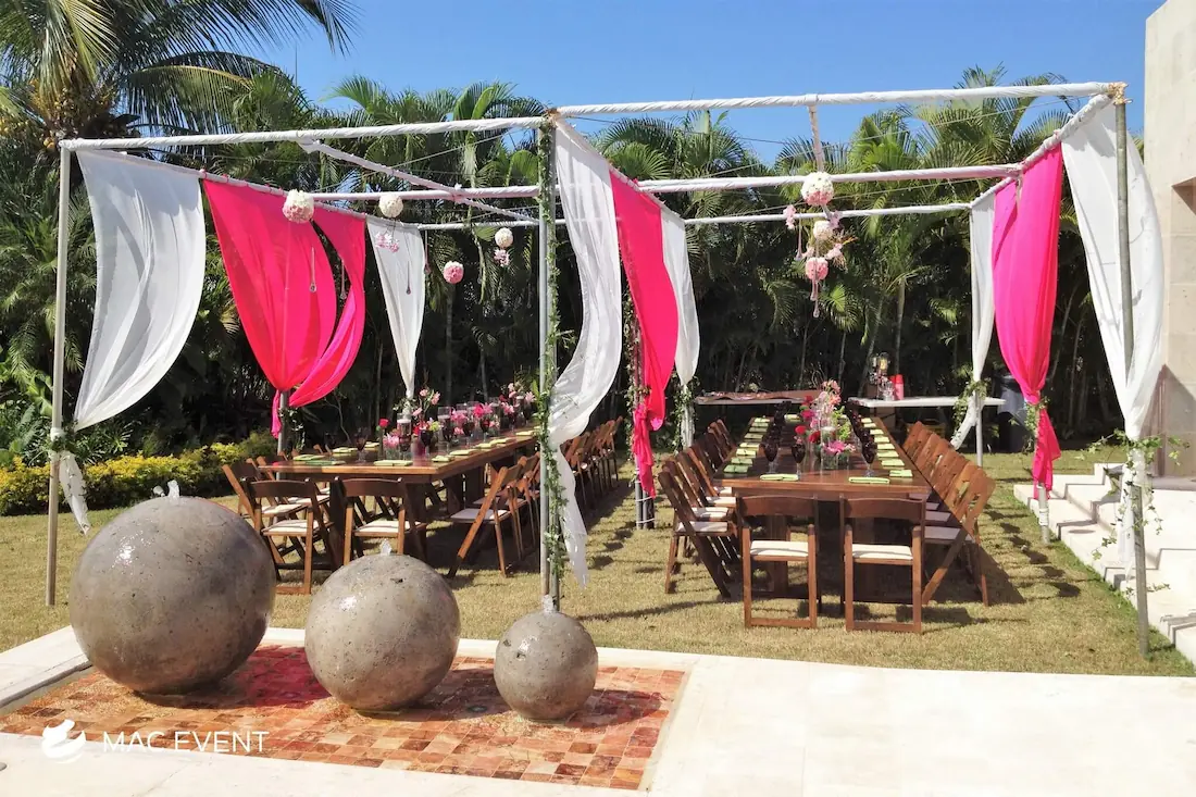 The canopy adds style, comfort, and versatility to weddings, parties, and corporate events in Nuevo Nayarit. Ideal for outdoor celebrations, this event structure rental provides shade and elegance while complementing your décor. Whether used for ceremonies, dining areas, or lounge spaces, the canopy enhances your setup with a refined and airy look. Available in various sizes and designs, it can be decorated with fabrics, greenery, or lighting to match your theme. Renting canopies in Nuevo Nayarit ensures professional installation and a cohesive presentation. For a beautiful and functional addition to your event, the canopy is a perfect choice.